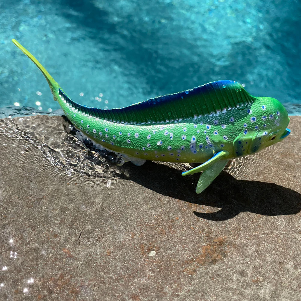 El dorado es importante tanto ecológica como económicamente, ya que forma parte de cadenas alimentarias oceánicas y sostiene pesquerías en muchas regiones del mundo. No está considerado en peligro a nivel global, pero depende de una gestión pesquera responsable. Una figura de dorado permite apreciar su forma estilizada y su aleta dorsal característica, ayudando a conocer mejor a uno de los peces más llamativos del océano abierto.